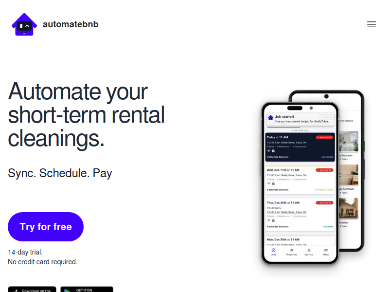 Airbnb cleaning app to automatically sync and assign cleanings simplify payments and get real time notifications at every step Ensure your Airbnb guests walk in to a clean and cozy home Automate your short term rental cleanings with Automatebnb