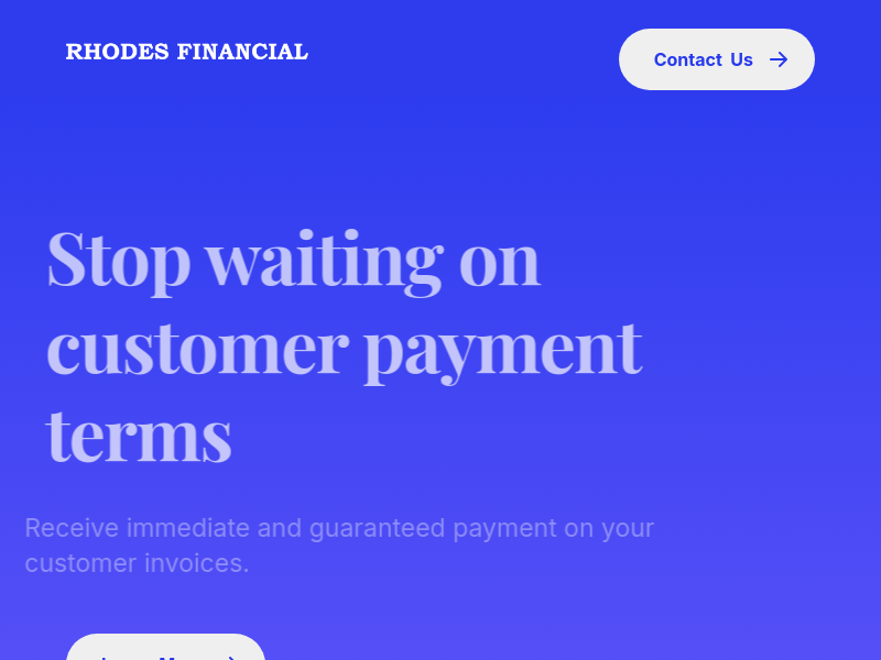 Rhodes Financial enables business owners to receive early payment on their invoices This helps reduce the risk of late payment disruptions and optimizes your company s cash-flow